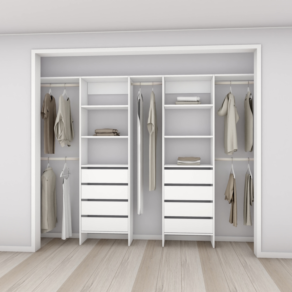 Our design guide offers inspiration for planning your wardrobe layout. Because our wardrobe systems are modular and standard sizes, they fit most wardrobe types. Sliding doors are custom made to fit your door opening. Whether you have a small or large wardrobe, everyone wants to maximise wardrobe storage space, so we’ve got some helpful tips to ensure you can use your wardrobe to its full potential!