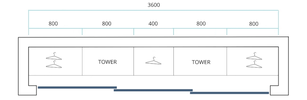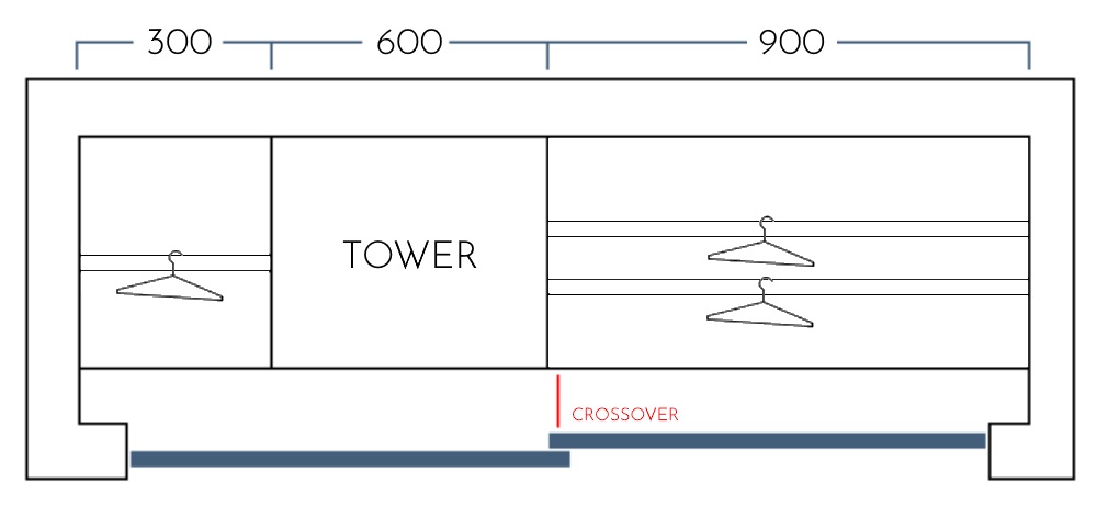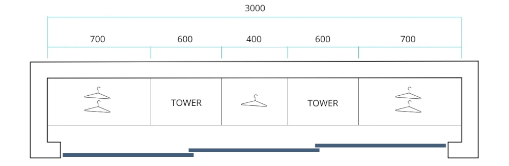 Now is the fun part…it’s time to plan your layout! Our modular tower units are standard sizes, and our hanging rails and top shelves are supplied oversized for customisation. What’s great about this is you choose where you place the tower/s and hanging rails. You can even install the hanging rails at any height.