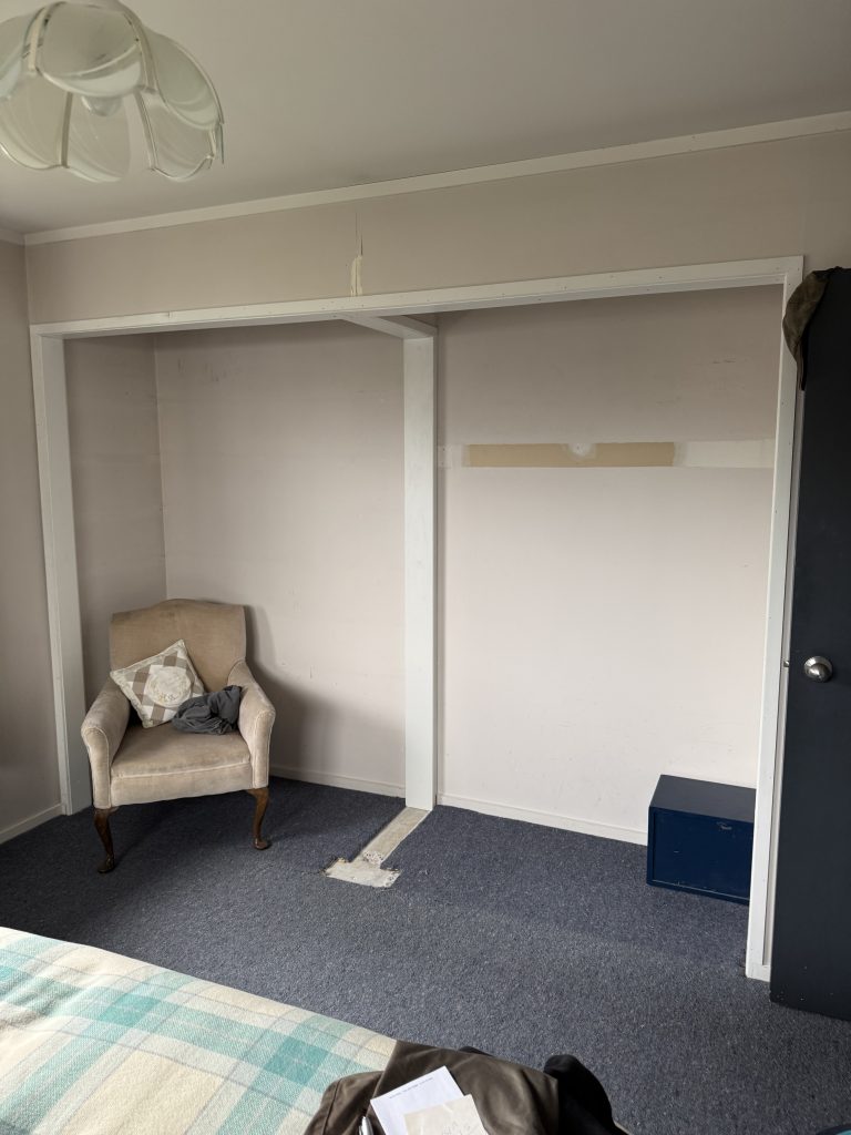 Hubby did removal of two sets of double doors and knocked out walls, redid framing ready for sliding doors and units this weekend