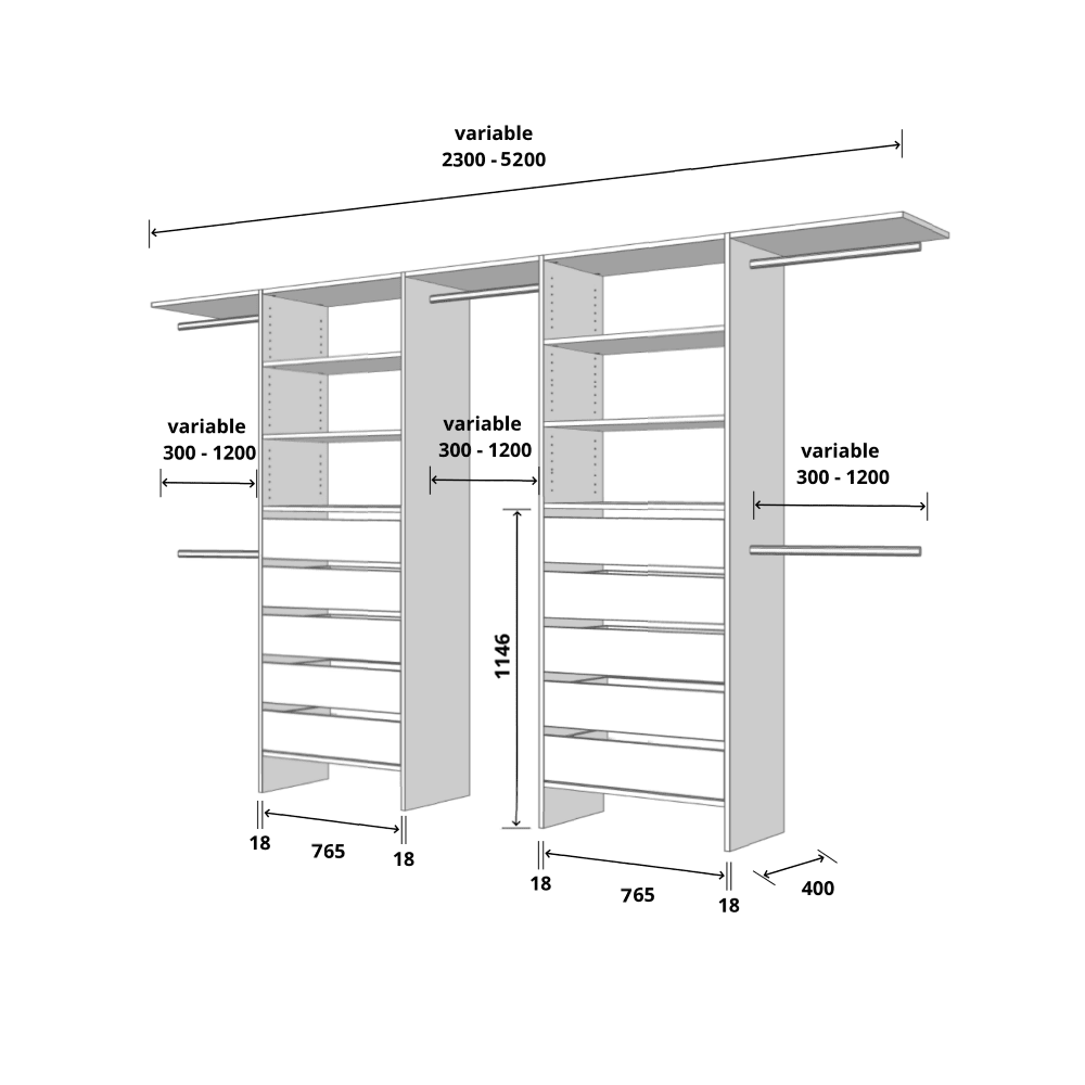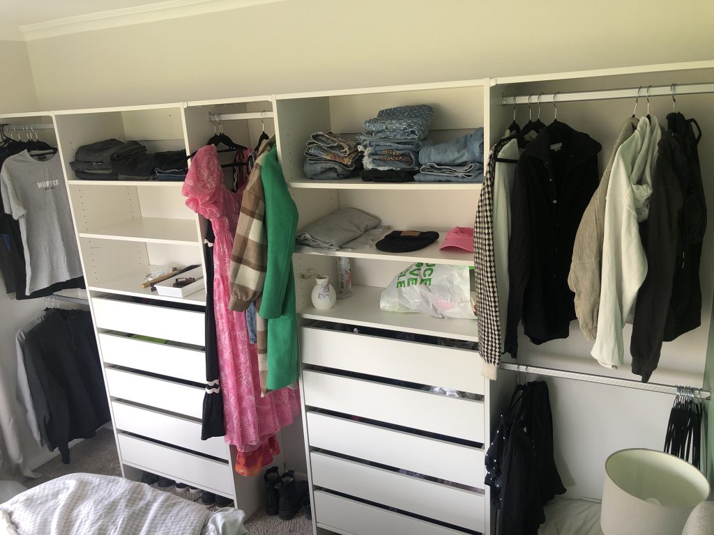 My partner and I are very happy with our new wardrobe! Really glad we chose the bigger drawers. Lots of storage for all our clothes & accessories, plus the added storage shelf on top gives you even more space. Also love having the rack in the middle for all my long dresses and coats. Very sturdy.