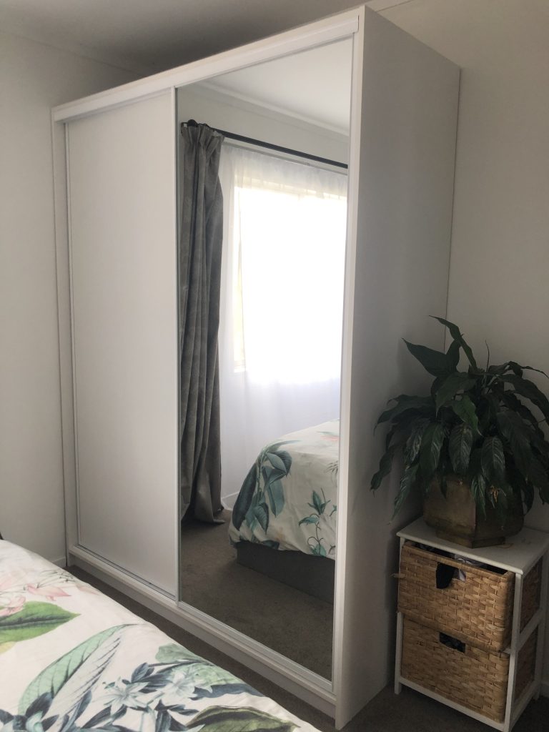 So happy with our wardrobe! I struggled to find a good quality, large enough freestanding wardrobe with sliding doors. This absolute wardrobe perfectly meets our needs, is sturdy and looks great. A great space saver in our small room (compared to a built in wardrobe).